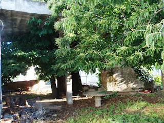 central com a piscina e o castanheiro, que estão na propriedade dos